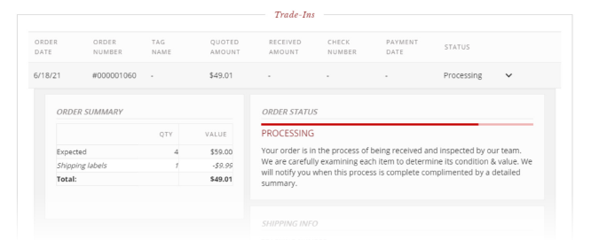 Get updated on your trade-ins throughout the receiving process and know where you order stands in real time!